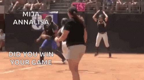 Mija Annalisa slides into home plate during a softball game, followed by the on-screen question 'Did You Win Your Game?'