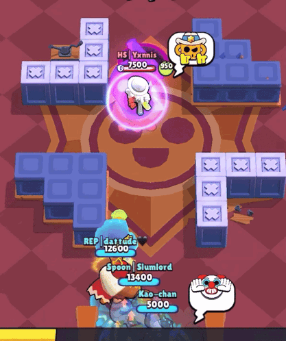 Intense Somalian Brawl Stars gameplay featuring players like REP dattude, Spoon Slumlord, and Kao-chan.