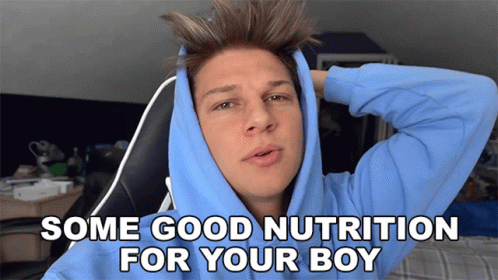 Conner Bobay in a blue hoodie, sharing 'Some Good Nutrition For Your Boy' message.