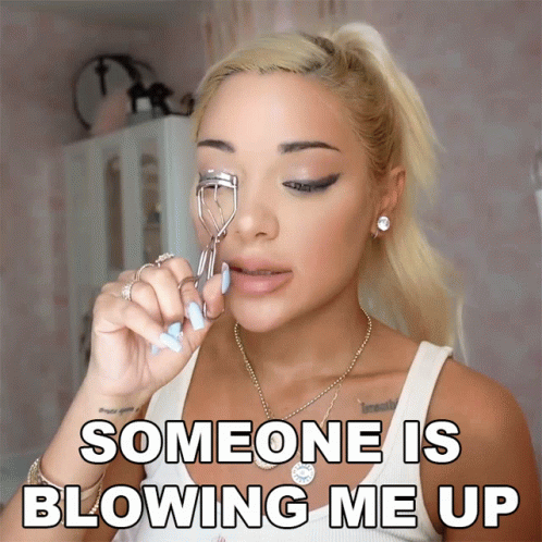 Gabriella Demartino reacts to her phone blowing up while curling her eyelashes.