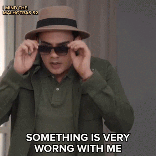From Mind The Malhotras S2, a man in a hat expresses, 'Something is very wrong with me.'
