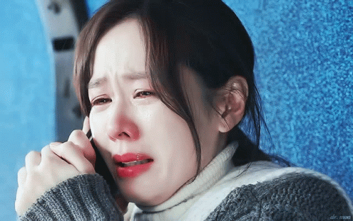 Son Ye Jin crying intensely while on a phone call, showing deep emotion in Crash Landing On You.