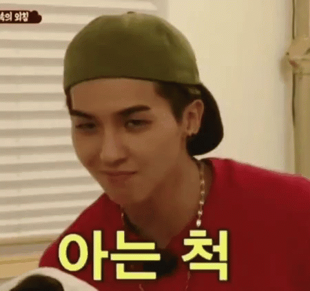 Song Mino Winner smirks knowingly at the camera, wearing a green hat and red shirt with Korean text.