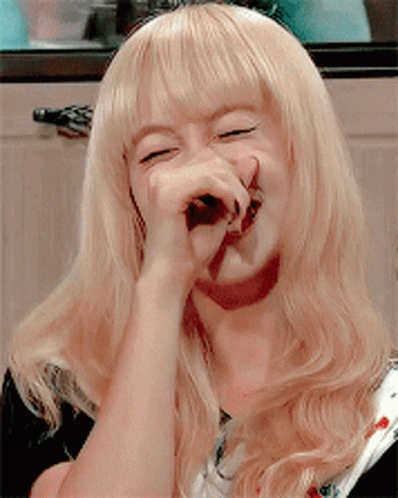 Victoria Song (Songqian) laughing heartily, covering her mouth with her hand.