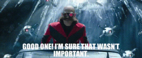 Dr. Robotnik (Jim Carrey) from Sonic Movie 2 delivers his iconic line, "Good one! I'm sure that wasn't important."