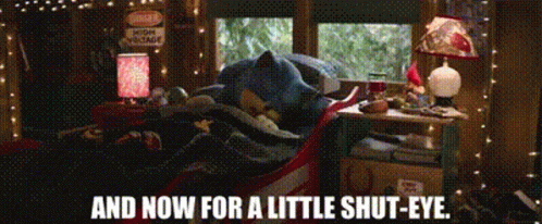 Sonic The Hedgehog settling down for a nap, ready for some shut-eye after a long day of adventures.