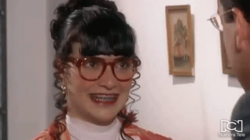 Beatriz Aurora Pinzon Solano, portrayed by Ana Maria Orozco, smiles broadly as her glasses are adjusted.
