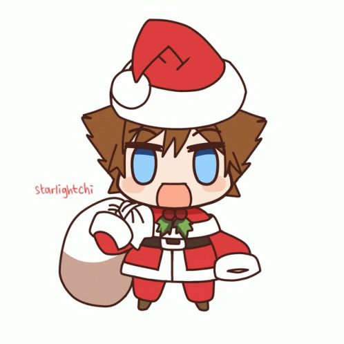 Sora Padoru dressed as Santa Claus, carrying a sack, with 'starlightchi' watermark.