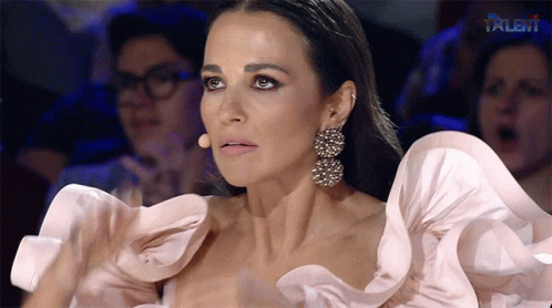Paula Echevarría reacts with a look of surprise and shock, holding her hands to her head during Got Talent España.