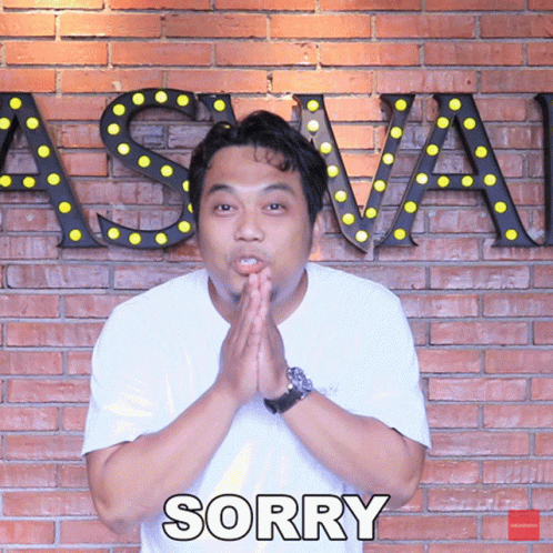 Boegiel Merpati from Merpati Band makes an apologetic gesture with 'Sorry' text overlay.