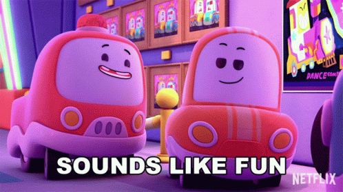 Freddie Firetruck and another car from Go Go Cory Carson are excited, with the caption "Sounds Like Fun" displayed.