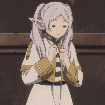 Frieren from Sousou no Frieren shyly twiddles her fingers, looking down with an embarrassed expression.