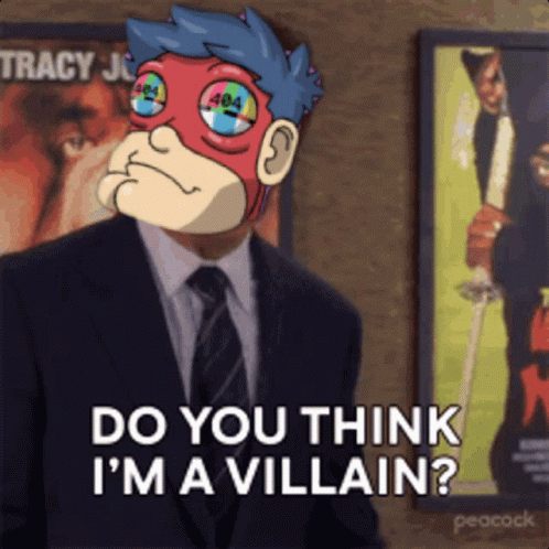 An animated character from Super Ordinary Villains asks, 'Do you think I'm a villain?'