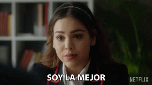 Lucrecia Montesinos Hendrich from Elite confidently declares 'Soy La Mejor' (I am the best) while wearing a school uniform.
