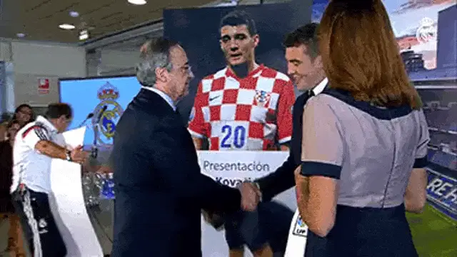 Quim Gutierrez as Soy Titan, the superhero from El Vecino, making a public appearance on a city street.