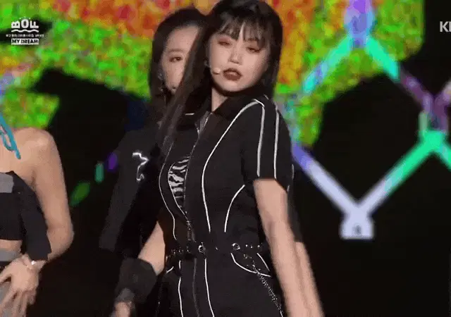 K-pop idol Jeon Soyeon from (G)I-DLE blows a playful kiss to the camera, wearing a vibrant purple jacket.