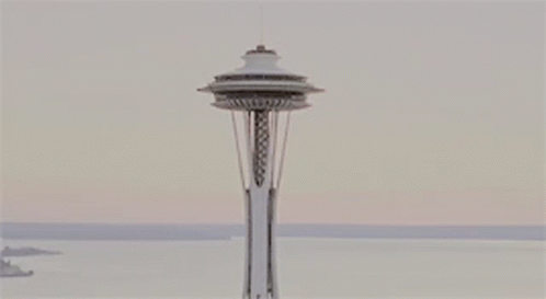 The iconic Space Needle stands tall against the sky in Seattle, Washington.