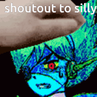 A pixelated drawing of Spaceboy Space Boyfriend with a hand gesture and 'shoutout to silly' text.