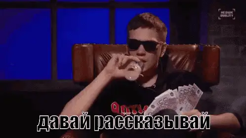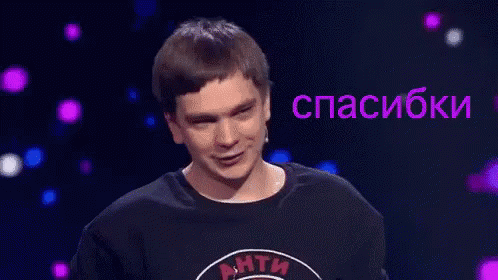Russian rapper Гнойный (Слава КПСС) says 'спасибки' (thanks) while wearing a black shirt on stage.