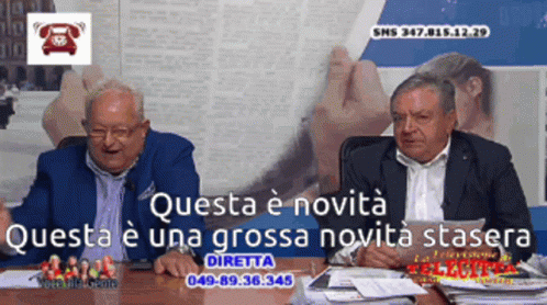 Spatalino Mauro Da Mantova and a co-host discuss big news live on Italian television, inviting viewer participation.