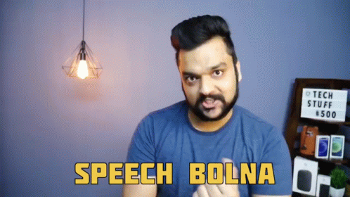 A man from Stufflistings emphasizes the importance of giving a speech, saying 'Speech Bolna Yaha Speech Dena Jaruri Hai'.