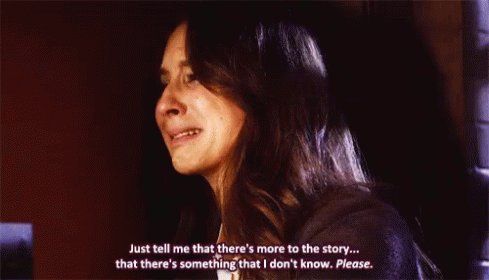 Spencer Hastings, portrayed by Troian Bellisario, cries and pleads for more information, saying 'Just tell me that there's more to the story...'