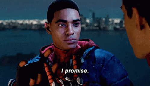 Miles Morales, as Spider-Man, makes a solemn promise in a pivotal moment.