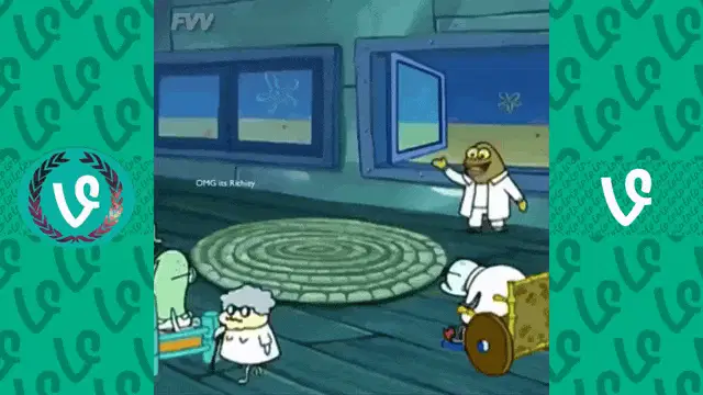 Spongebob Squarepants runs excitedly through a field, tongue out and eyes popping, ready for jellyfishing.