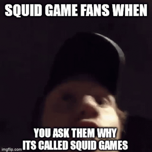 A meme showing Squid Game fans' reaction when asked why the show is called Squid Games.
