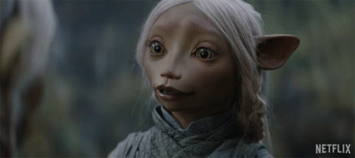 Brea from Dark Crystal: Age of Resistance with a squinting, unsure expression, a Netflix logo visible.