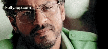 Shah Rukh Khan, as seen in Raees, with glasses and a beard, giving an intense look.