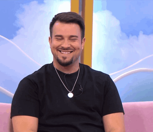 Francisco Monteiro (Ss8 Zaza) smiling and laughing, wearing a black t-shirt and silver necklace.