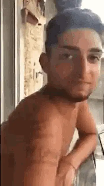 Asanaka Yomogi and Gauma, shirtless in a forest, share a moment before a playful jump into water.