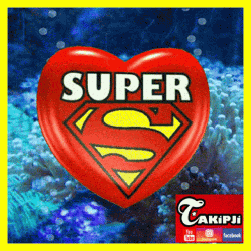 A vibrant red heart featuring the iconic Superman logo and the word 'SUPER' against an underwater background.