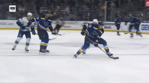 Alexei Toropchenko scores a goal for the St. Louis Blues during an NHL hockey game.