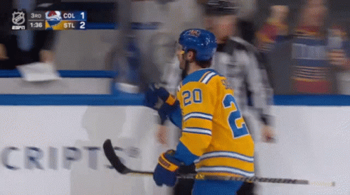 Brandon Saad of the St. Louis Blues celebrates a goal, with the team leading Colorado 2-1 in the 3rd period.