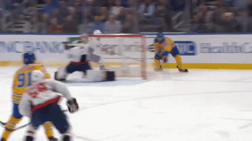 Pavel Buchnevich of the St Louis Blues in action during a hockey game, near the goal.