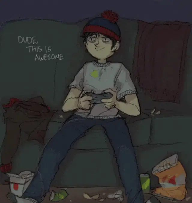 Stan Stanley, the Stanley cup character, watches a movie in 3D glasses, enjoying popcorn in a cinema setting.