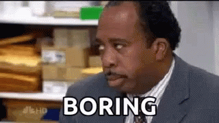 Stanley Hudson from The Office looks unimpressed, uttering 'Boring' in a classic reaction.