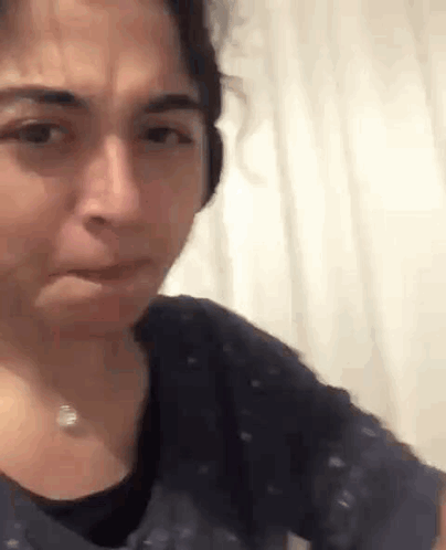 A stantwt girl with headphones and a necklace is seen crying and sobbing, expressing deep emotion.