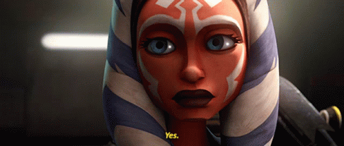 Ahsoka Tano from Star Wars: The Clone Wars reacts with a firm 'Yes'.