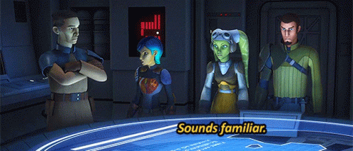 Hera Syndulla and other Star Wars Rebels characters react to something, with the caption 'Sounds familiar'.