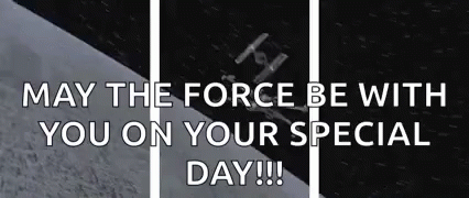 A Star Wars themed message wishing someone well on their special day, featuring a spaceship.