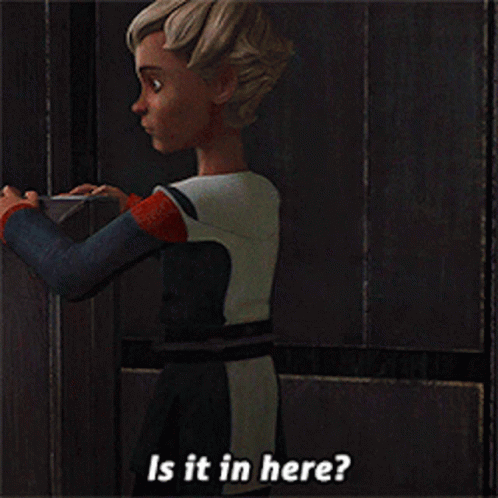 Omega from Star Wars: The Bad Batch peeks around a corner, asking 'Is it in here?'