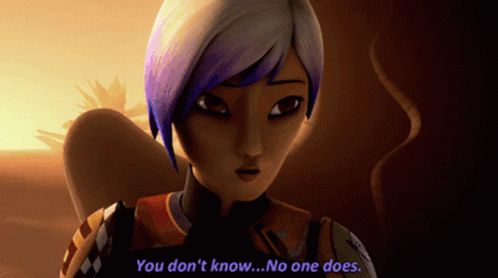 Sabine Wren from Star Wars Rebels says, 'You don't know...No one does.'