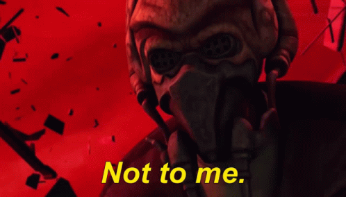 Jedi Master Plo Koon delivers the defiant line 'Not to me' in Star Wars: The Clone Wars.