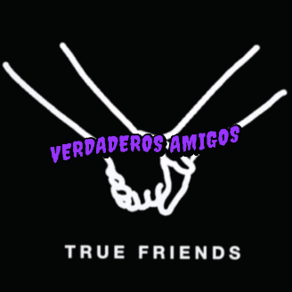 Image of two hands holding with 'True Friends' and 'Verdaderos Amigos' text, referencing social media platforms.