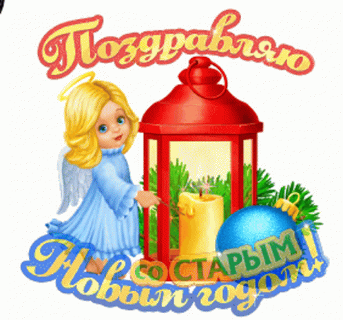A cartoon angel with a lantern and candle, celebrating the Old New Year.