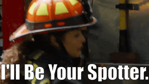 a firefighter is wearing a helmet and says i 'll be your spotter