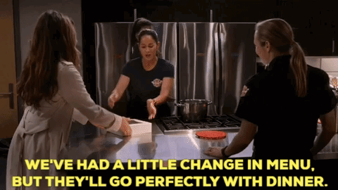 Andy Herrera from Station 19, portrayed by Jaina Lee Ortiz, reacts to a menu change in a kitchen scene.